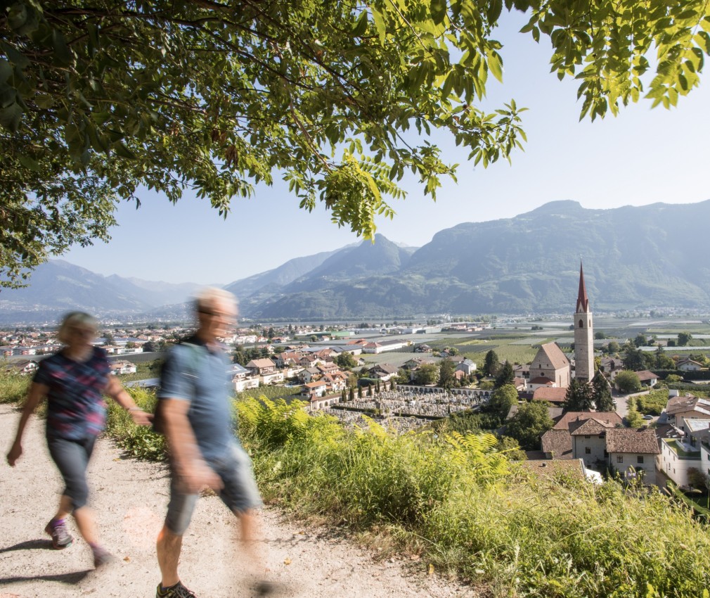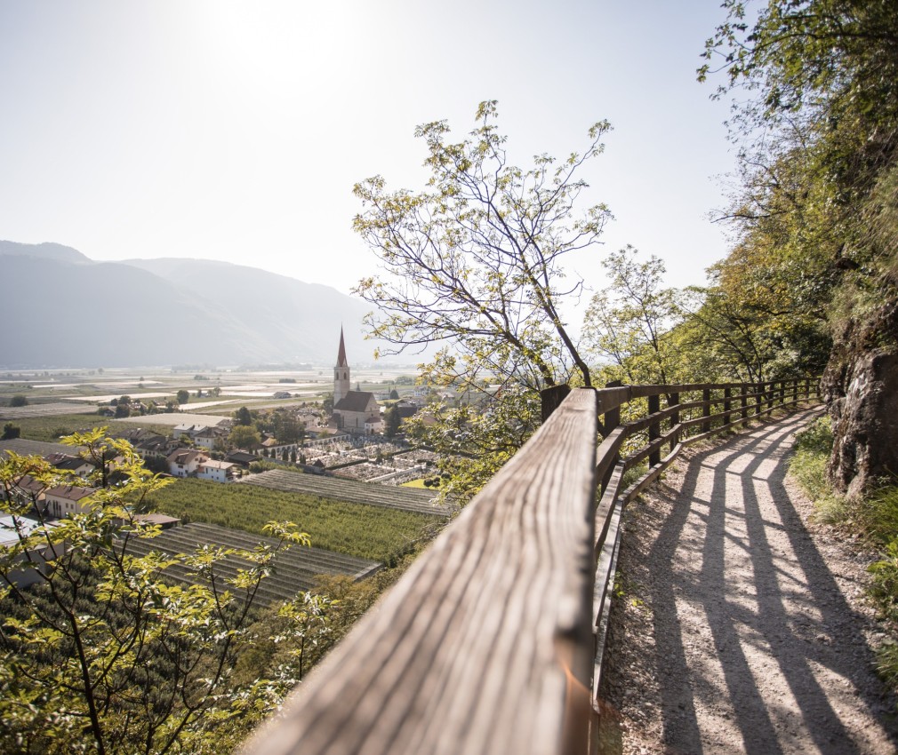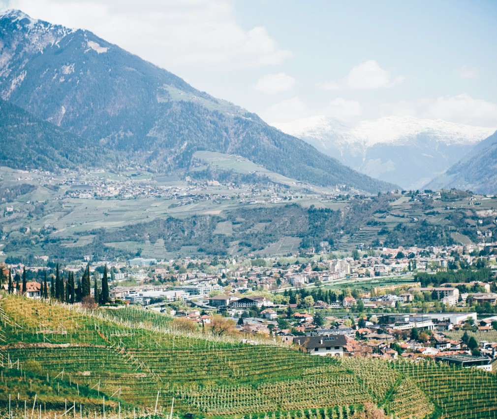 Weil Du hier im 3. Stock eines Turms bist, hast Du den perfekten Ausblick! Von hier oben siehst Du das kleine Dörfchen Lana und hast einen weiten Blick über das wunderschöne Etschtal, das vom gleichnamigen Fluss durchzogen wird. Das ganze Gebiet hier nennt sich „Burggrafenamt“ und ist bekannt für sein mildes Klima – perfekt für den Anbau von allerlei Apfelsorten und natürlich von Wein. Das macht Lana und die Umgebung zu einem echten Hotspot für Feinschmecker. Die Küche vereint das Beste aus Bergbauern-Tradition und mediterranen Rezepten.